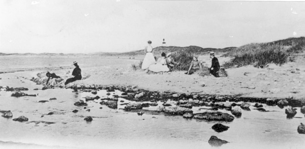 venstre herfor den tidligere strandkontrollørbolig, der i 1961 blev undermineret