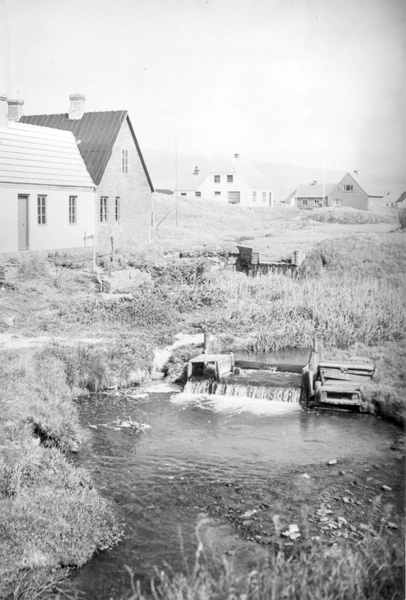 til højre stampemøllen (Vestermølle), som havet tog i halvtredserne og bagved