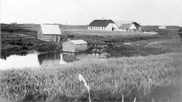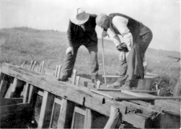 Matr. nr. 75 a: Carl Thousig Møller og Peder Konge Mortensen betragter stigbordet ved Ålekisten.
